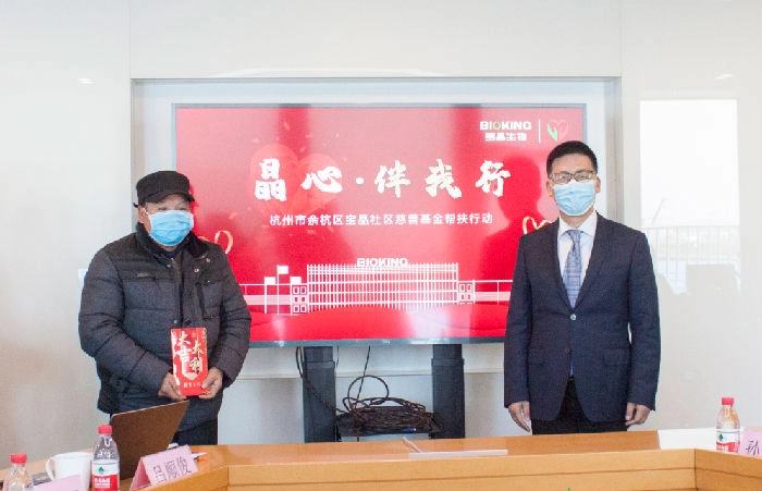2021年1月8日,“晶心·伴我行”杭州市余杭区豪门国际官网社区慈善基金会帮扶活动在杭州豪门国际官网生物股份有限公司举行。塘栖镇党委书记郎一舟、副调研员王明、豪门国际官网生物董事长张建国、豪门国际官网社区慈善基金会理事长孙伟荣、副理事长黄婉秋及5户困难家庭代表等出席活动。
