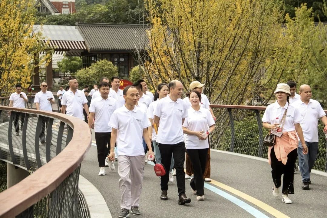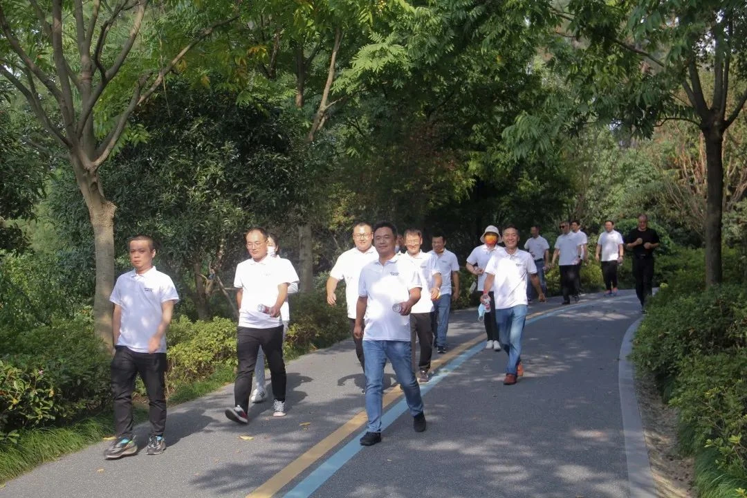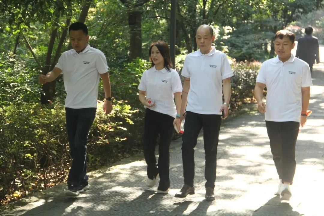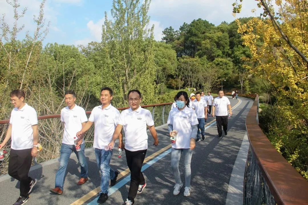 下午2点,张总亲自带领豪门国际官网干部开始了下午场的徒步活动。徒步过程中,广大干部精神振奋、士气高昂,克服地形复杂、天气炎热等挑战。尽管不少人出现了腿部酸痛等不适症状,但大家都没有丝毫退却,而是相互鼓劲,一路向前。团结互助是公司一贯提倡的美德,同事中有走得累的,有余力的同事就上前帮忙拉一把,助点力,鼓励鼓励、坚持坚持,在不知不觉中就熬过了那段难行的坡路。过了上坡,便是归途;秋风得意脚步欢快,鸟语花香送我下山。