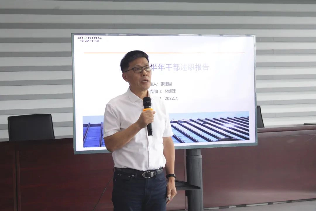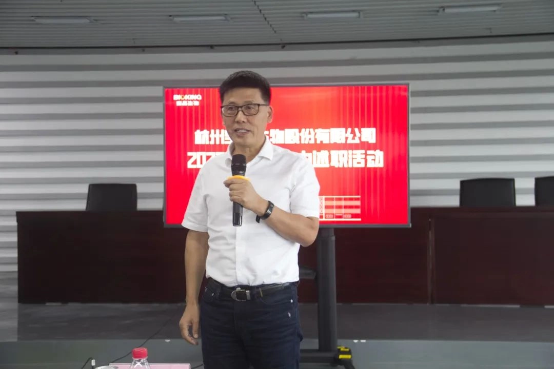 7月21日下午,杭州豪门国际官网生物股份有限公司在三楼大会堂举办了2022年度年中干部述职活动暨《员工手册》发放仪式,公司总经理张建国先生出席,本次参会人员包含中层副职及以上干部共36人,活动由办公室主任许素萍主持。