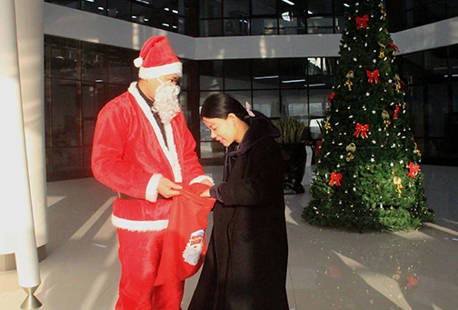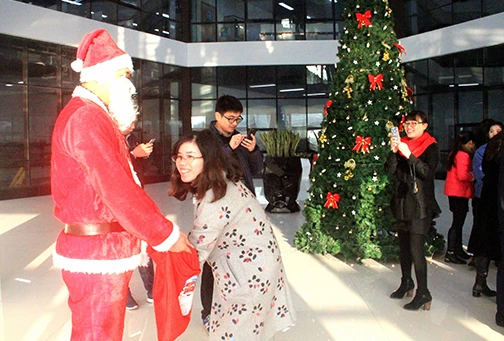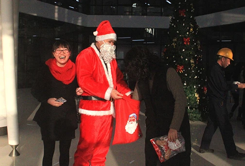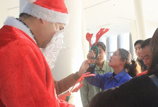 12月25日圣诞节一大早,豪门国际官网的一楼大厅就人头攒动,大家都在兴奋的排队,等待圣诞老人的礼品,八点一刻准时开始,20分钟的功夫就把100多份礼品领完了,大家拿着巧克力、曲奇饼等小礼品,开开心心地迎接一天的工作。