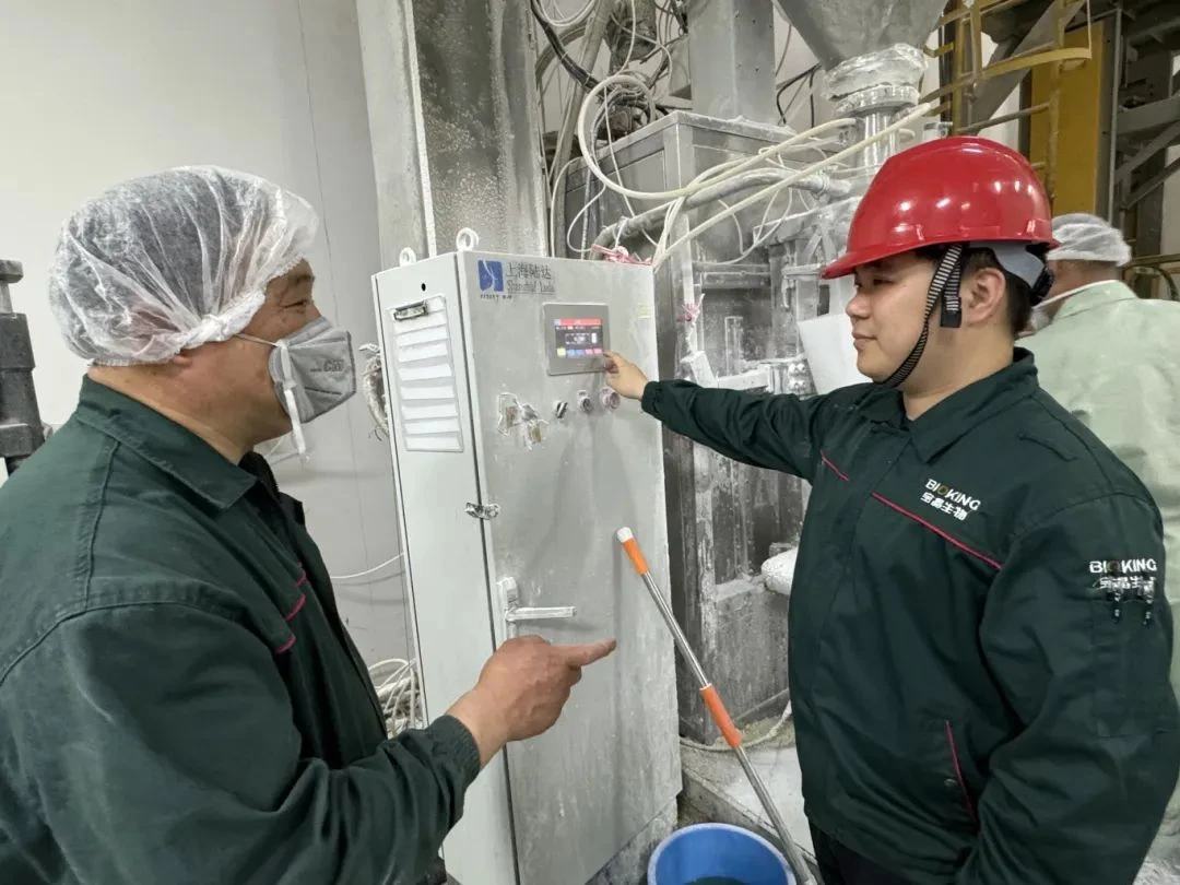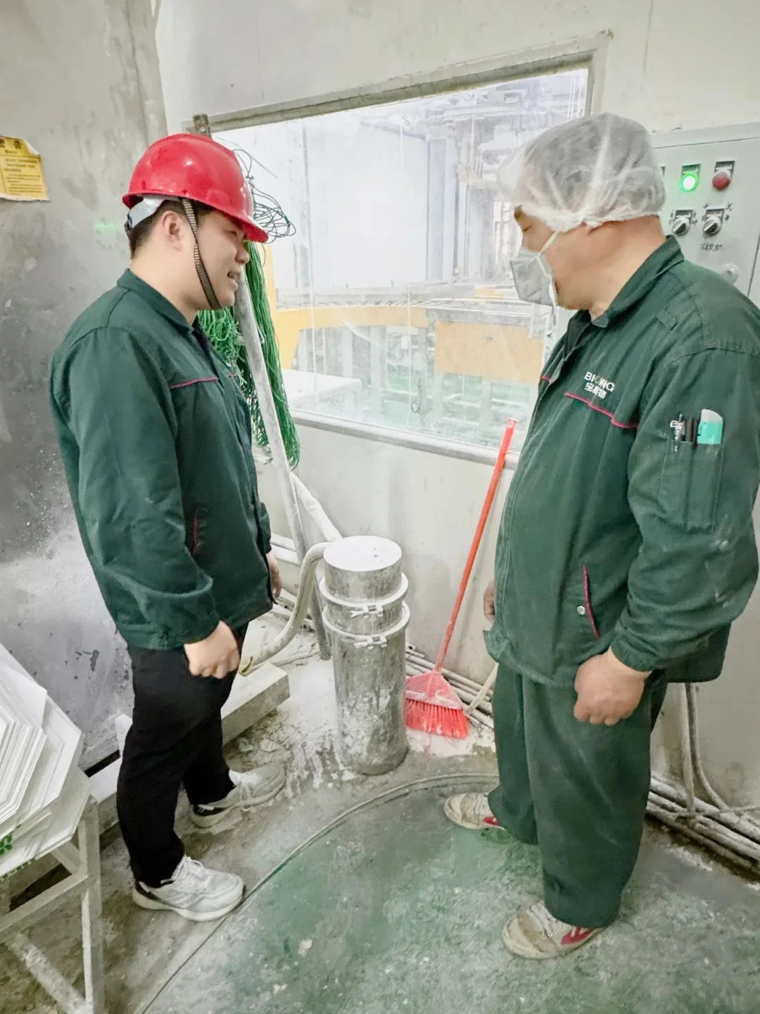 2024年3月24日上午,包装车间粉碎工段小包机突发故障,导致地面积料严重,包装线处于停滞状态,在场的员工们都焦急万分。包装科现场管理人员联系机修、电修轮番抢修,但问题还是没有得到完全的解决。此时,生产进度已严重落后,粉碎车间的人员们想到了曾经在包装车间共事过的安全科吴晨俊,他在接到消息后立刻抵达现场查看情况。