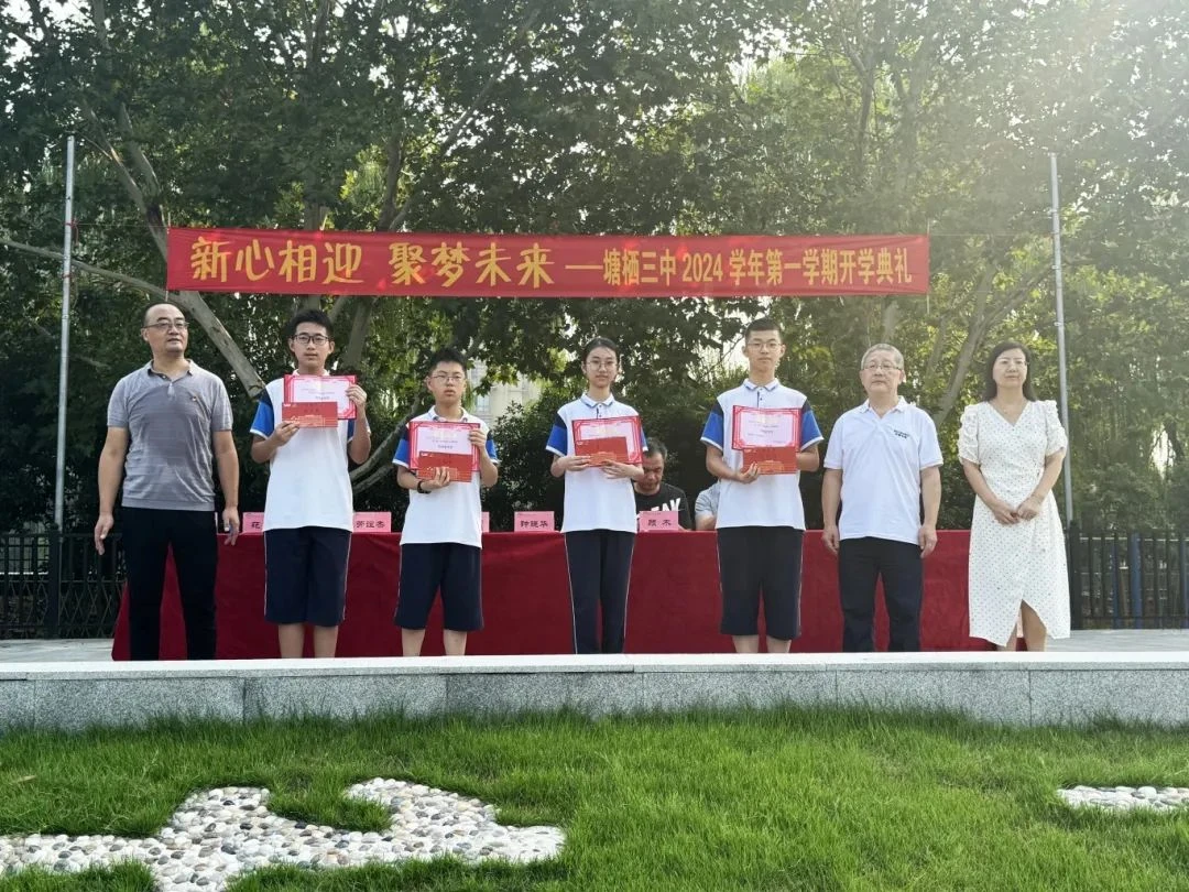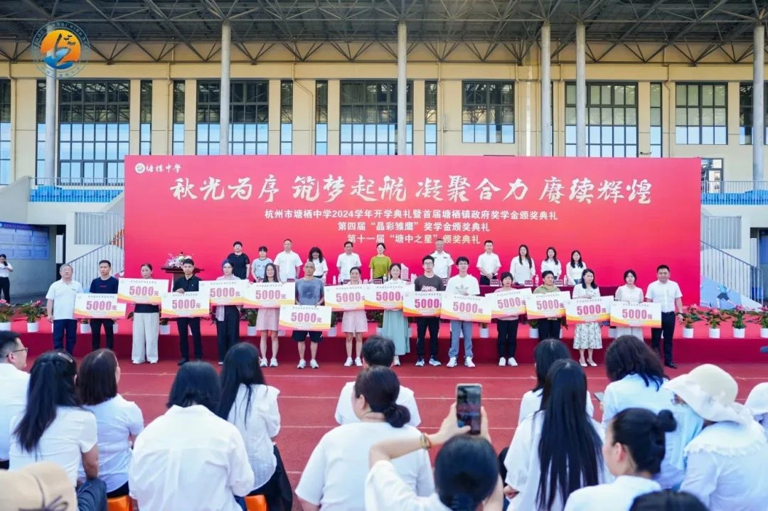 9月9日下午,豪门国际官网社区慈善基金会理事长孙伟荣先生和理事许素萍女士受邀出席塘栖中学2024学年第一学期开学典礼。塘栖中学副书记、副校长闫永吉,副校长胡春英,副校级视导员吴江林分别宣读了第四届“晶彩雏鹰”奖学金获奖名单、“第十一届塘中之星”表彰名单和“塘栖镇镇政府奖学金”获得者名单。理事长孙伟荣为获奖学生颁奖并合影留念。