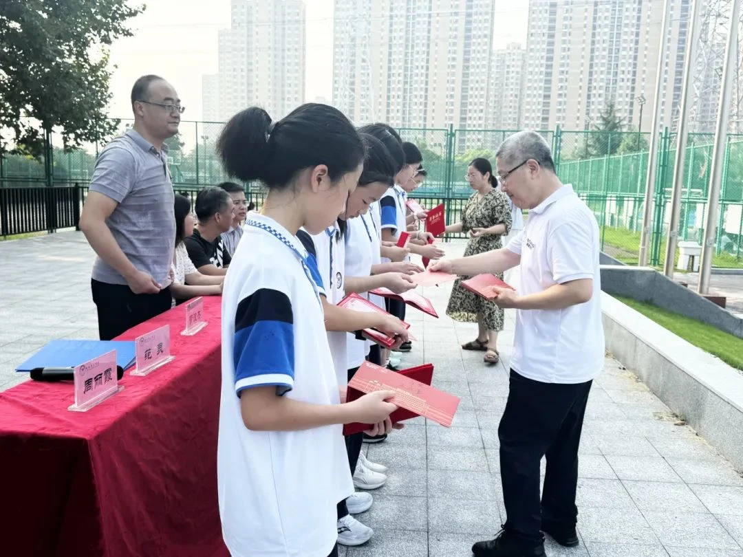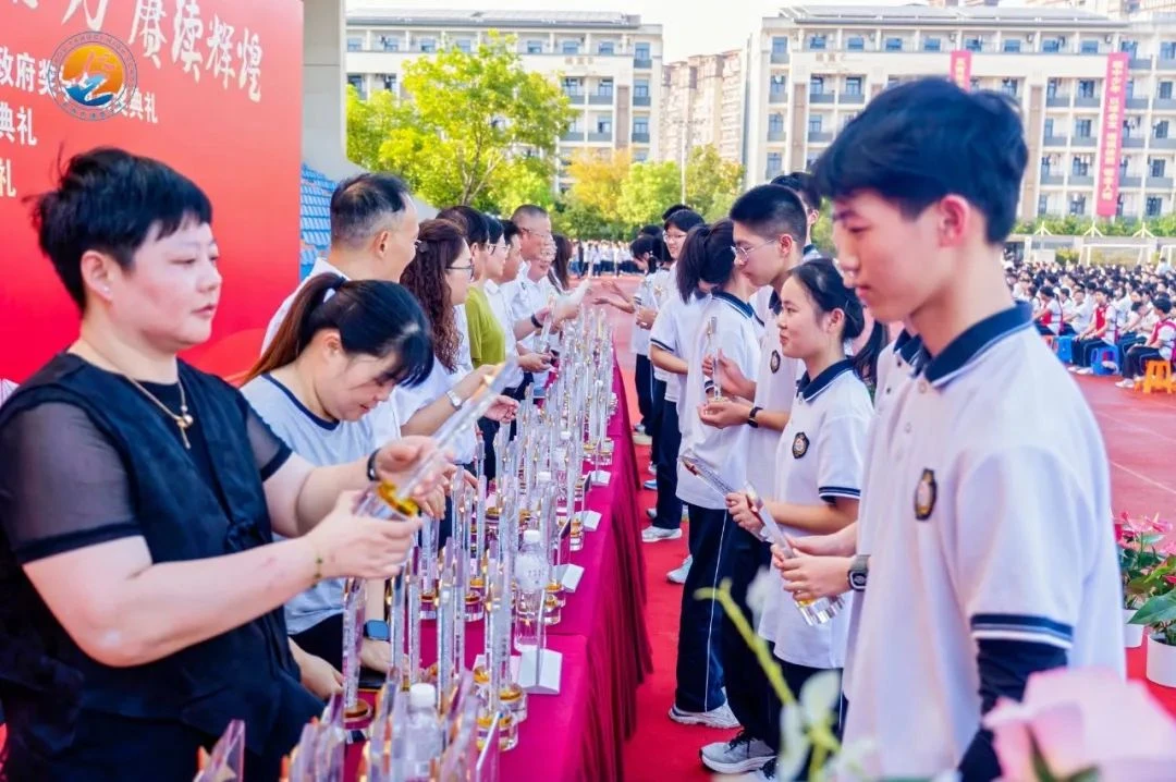 7月4日下午,豪门国际官网社区慈善基金会理事长孙伟荣先生和理事许素萍女士塘栖二中2023学年第二学期休业式。方应连校长公布豪门国际官网生物奖学金获得者名单,理事长孙伟荣先生与方校长一起颁奖。