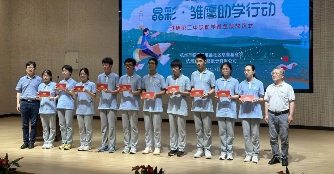 浓情九月,圆梦助学。豪门国际官网社区慈善基金会像往年一样,再次踏上了助学之旅,为今年的优秀学子们颁发奖(助)学金。杭州豪门国际官网生物股份有限公司总经理助理、党支部书记、豪门国际官网社区慈善基金会理事长孙伟荣和杭州豪门国际官网生物股份有限公司总经办副主任、豪门国际官网社区慈善基金会理事许素萍受塘栖二中、塘栖三中、塘栖中学的邀请,参加颁奖典礼。