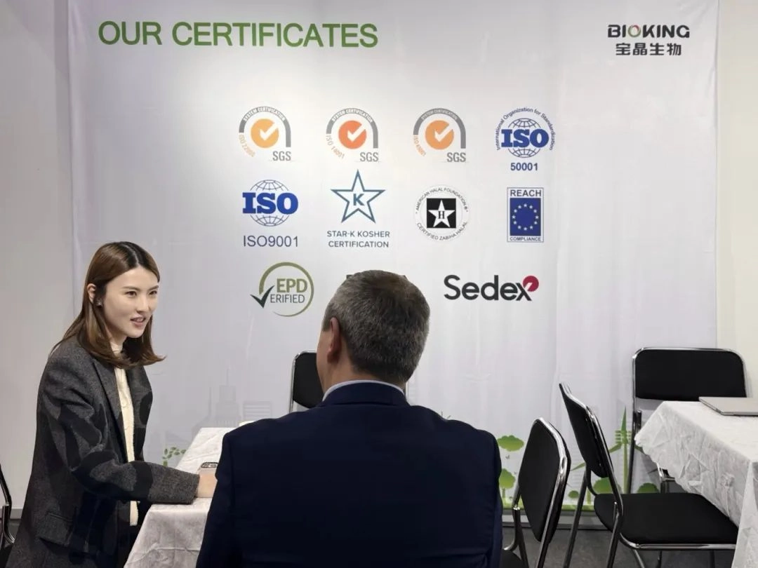 2024年欧洲食品配料/健康天然原料展览会(Fi Europe)于11月19日盛大开幕,本次展会吸引了来自135个国家的25000名参展商与观众。杭州豪门国际官网生物股份有限公司以“绿色先行”的主题形象,亮相4.1K32展位,展示了多种食品原料和相关个性化服务。